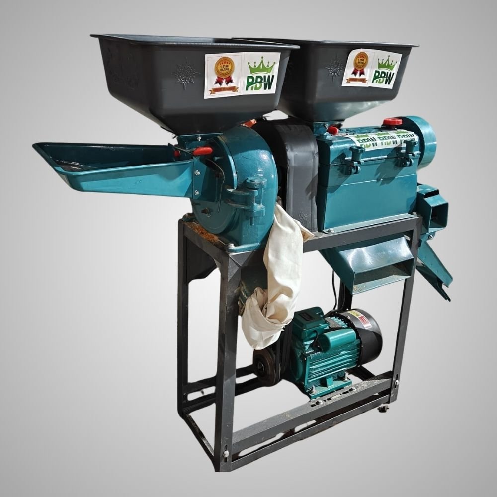 The rice mill machine is built for consistent performance and durability, powered by a 3 HP copper motor that ensures smooth operation and long service life. Running on 220V single-phase supply with a motor speed of 2800 RPM, it efficiently processes 120–150 kg/hr of rice and 30–40 kg/hr of wheat. Its sturdy construction and 85 kg balanced weight reduce vibration and enhance stability during operation. Designed for ease of use and high output, this machine is ideal for farms, small mills, and commercial grain processing units.